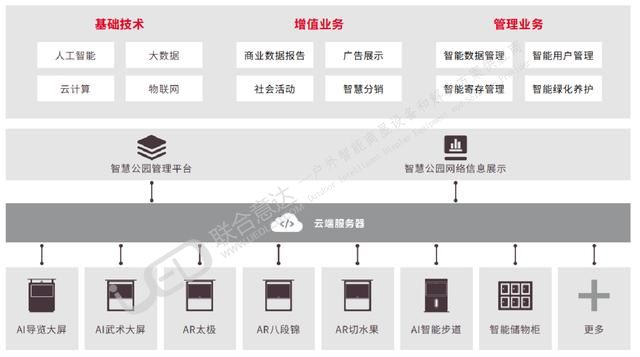 智慧公園主要包括:可視化數(shù)據(jù)中臺、安防監(jiān)控、智慧步道、智慧發(fā)布、智能器材、智慧燈桿、智慧公廁、智慧互動大屏、智慧公園綜合管理平臺、用戶小程序、智慧儲物、智慧垃圾箱、智慧座椅、無人值守便利店十四大部分組成,一個統(tǒng)一綜合管理后臺、一個可視化數(shù)據(jù)中心、一個用戶服務(wù)小程序、十一類智能化設(shè)備。